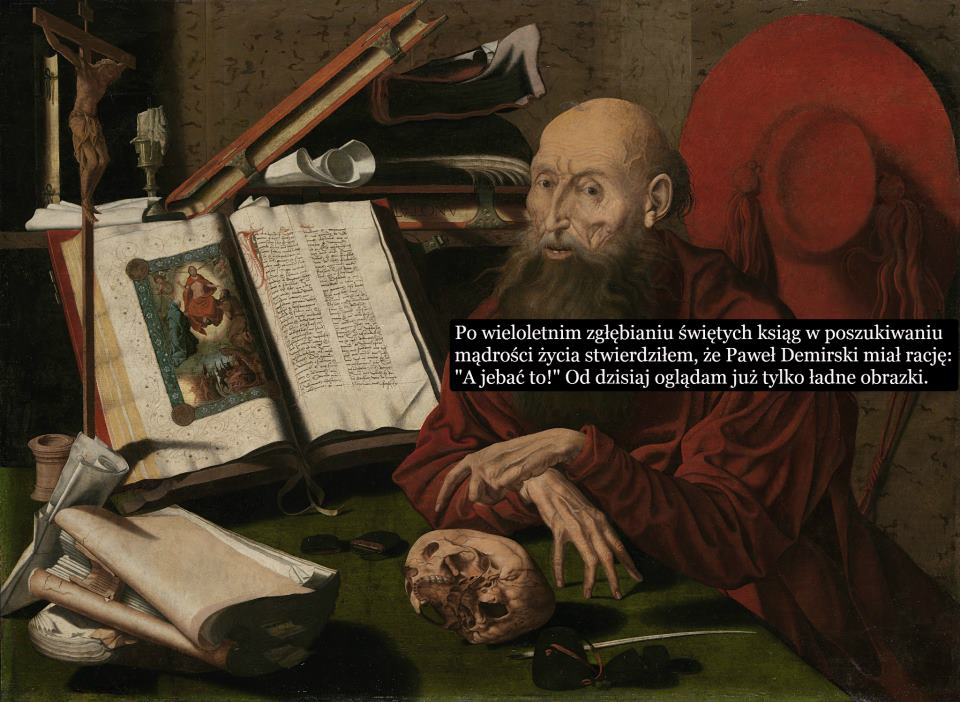 Zastanawiam się ostatnio nad statusem operacji, jakie są dokonywane na „świętych obrazach” w internecie. Czy to, co trafia do sieci, automatycznie traci na świętości i nie może zostać sprofanowane? Tak twierdzą zwolennicy teorii symulakrów. Jeśli się z nimi zgodzić, takie obrazy jak ten nie powinny nikogo oburzać. Nie mają mocy bluźnierstwa.